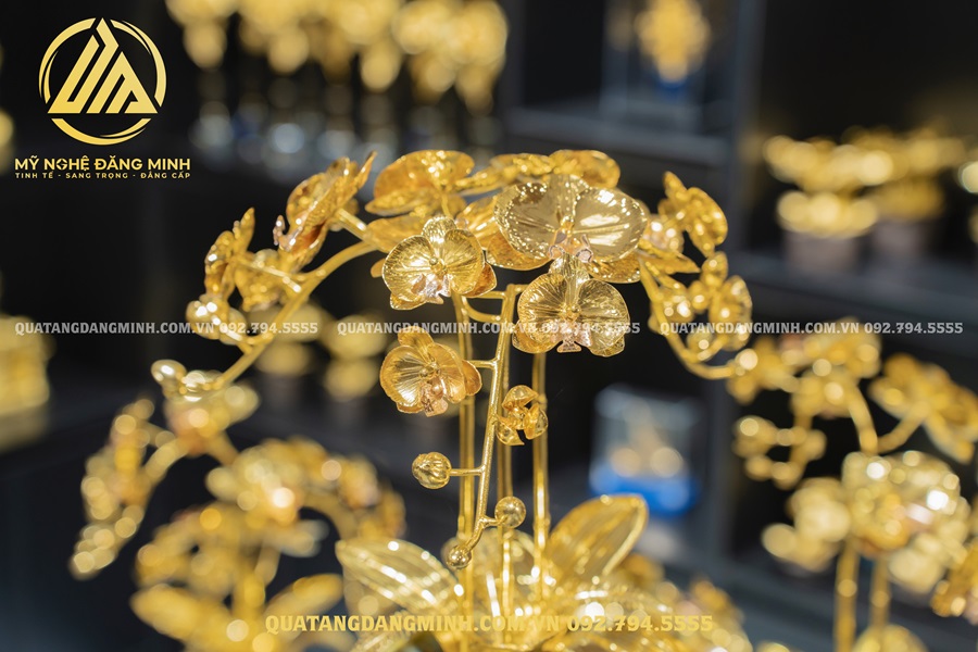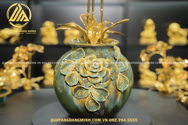 - Bình với chế tác 3 cành hoa, lá, cành mạ vàng 24k, màu sắc ánh kim sống động và sang trọng.