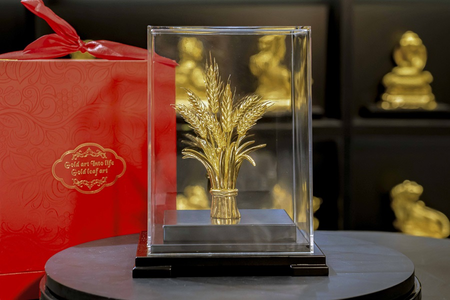 Cây lúa không chỉ là biểu tượng của nền văn hóa nông nghiệp lâu đời mà còn mang ý nghĩa phong thủy sâu sắc trong cuộc sống người Việt. Cây lúa dát vàng 24k là món quà tặng độc đáo, tượng trưng cho sự sung túc, may mắn và tài lộc. Với thiết kế tinh xảo, lớp vàng 24k lấp lánh mang lại vẻ đẹp sang trọng, giúp tôn lên sự cao quý và đẳng cấp của người sở hữu.