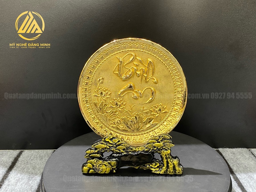 Đĩa Đồng Chữ Bình An Mạ Vàng 24K – Biểu Tượng Của Cuộc Sống Hạnh Phúc