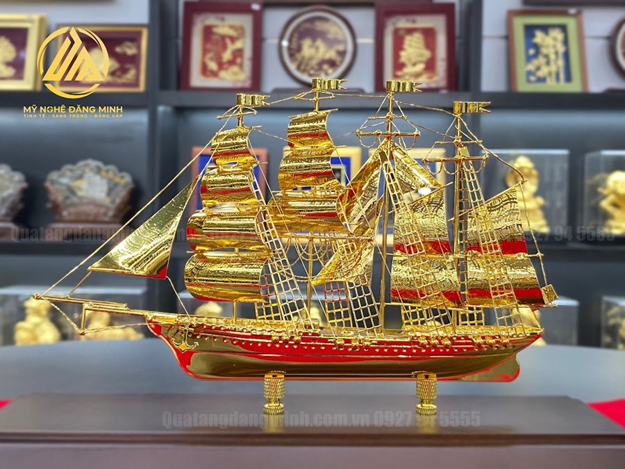 Thuyền buồm phong thủy là biểu tượng của sự hanh thông, thuận lợi, giúp chủ nhân gặp nhiều may mắn lợi ích, công việc chia sẻ và phát triển không ngừng. Đặc biệt, mô hình thuyền mạ vàng 24K còn biểu tượng cho sự thịnh vượng, thu hút tài lộc và phát triển bền vững.