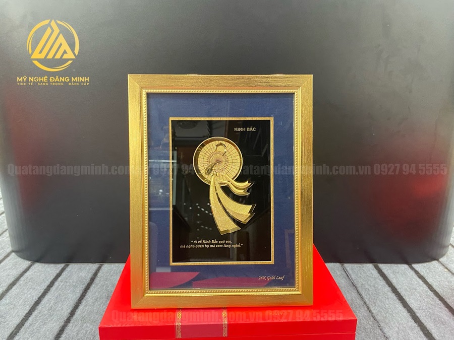 Được chế tác tinh xảo, lá vàng 24K sang trọng, tạo nên sự độc đáo và đẳng cấp. Đây chính là quà tặng Kinh Bắc mang đậm dấu ấn văn hóa dân tộc.