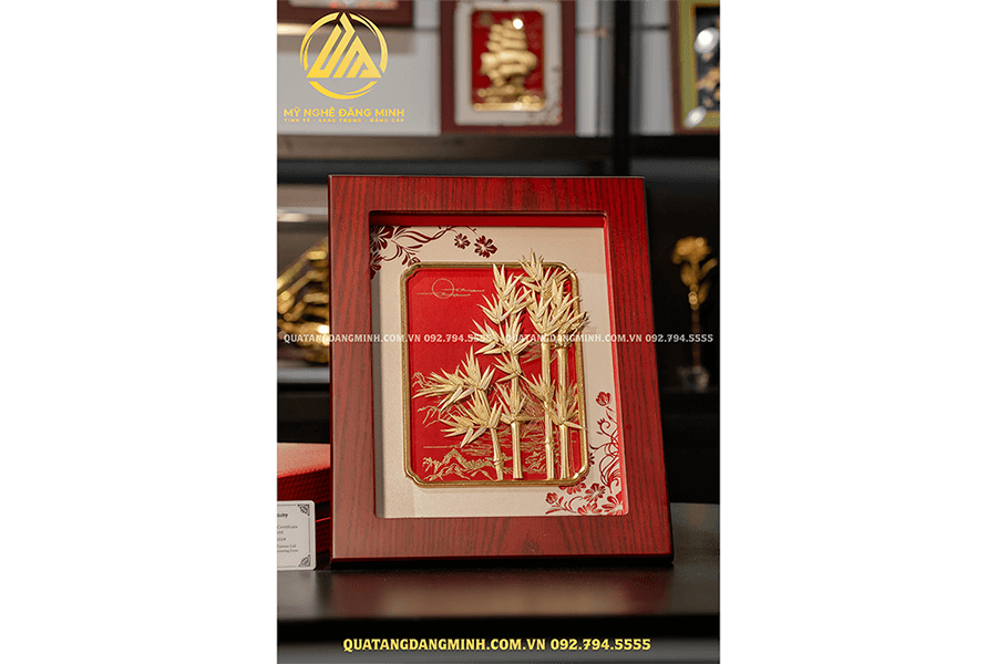 Tranh cây trúc dát vàng 24k 27x34cm với những ý nghĩa tốt đẹp như thế đã trở thành món quà được ưa chuộng nhất! Nếu Quý khách đang tìm kiếm các dòng tranh đẹp có ý nghĩa phong thủy to lớn với mức giá ưu đãi hãy ghé qua Đăng Minh nhé!