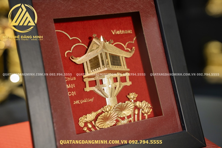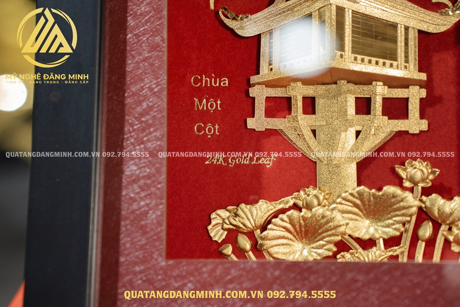 Chùa Một Cột là một ngôi chùa Phật Giáo mang tính biểu tượng ở Hà Nội, Việt Nam. Với kiến trúc độc đáo nhô lên khỏi mặt nước trên đỉnh một cột đá duy nhất tựa như một bông sen cách điệu nằm trong ao. Đây là một trong những ngôi đặc biệt nhất Châu Á. Ngôi Chùa tuyệt đẹp này đã tồn tại hơn một nghìn năm như một nơi thờ cúng và chiêm nghiệm tĩnh lặng. Lấy ý tưởng từ đó, Mỹ Nghệ Đăng Minh đã chế tác mẫu tranh quà tặng Chùa Một Cột dát vàng 24k. Đây là món quà quý giá tặng sếp, khách hàng,đối tác, du khách nước ngoài,…