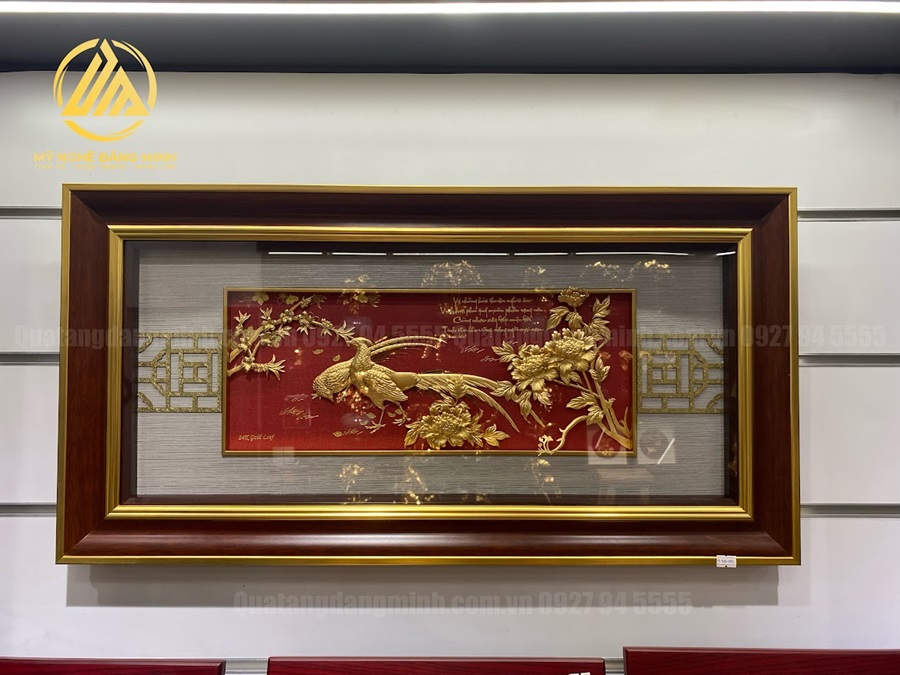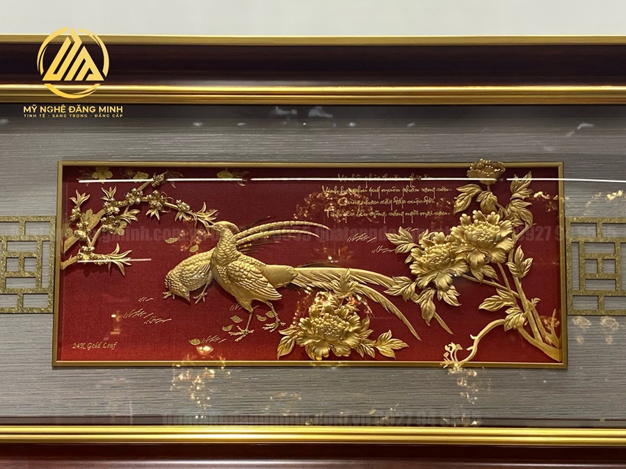 Tranh đôi chim trĩ hoa mẫu đơn dát vàng 24K không chỉ là một tác phẩm nghệ thuật tinh xảo mà còn mang ý nghĩa phong thủy sâu sắc. Được xem là biểu tượng của sự hòa hợp và thịnh vượng, đây là món quà hoàn hảo cho mọi dịp đặc biệt.