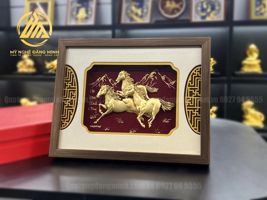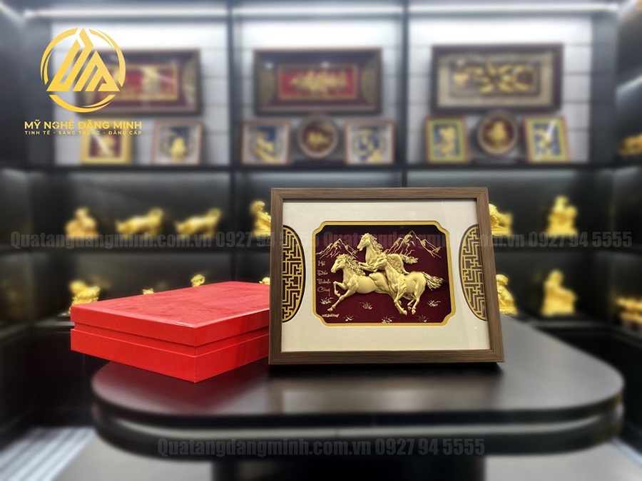 Tranh Tam Mã dát vàng 24K không chỉ là sản phẩm nghệ thuật mà còn mang ý nghĩa phong thủy sâu sắc. Đây là món quà hoàn hảo dành cho những ai yêu thích sự sang trọng và giá trị tinh thần cao.
