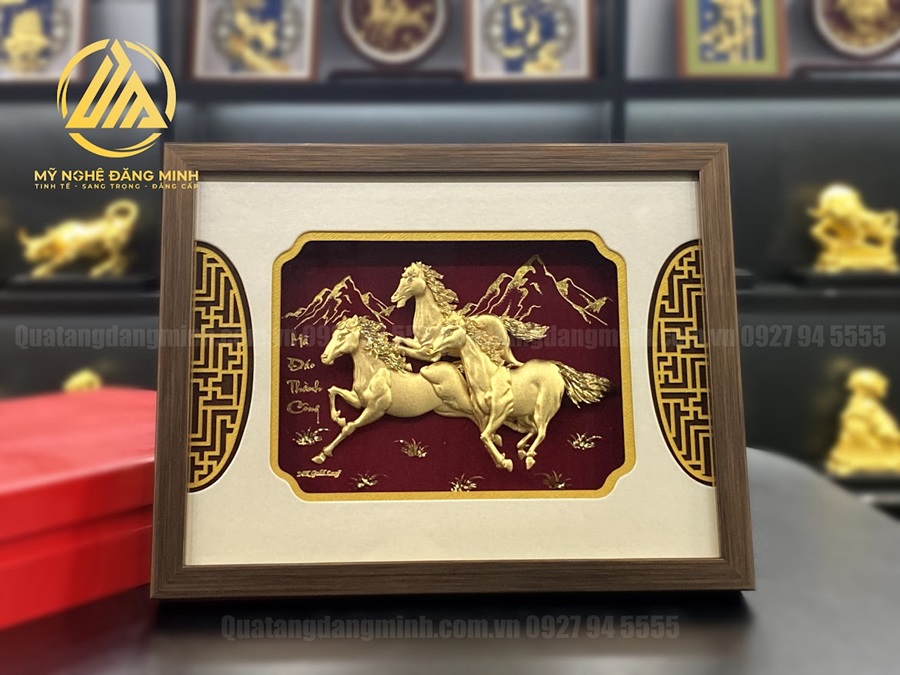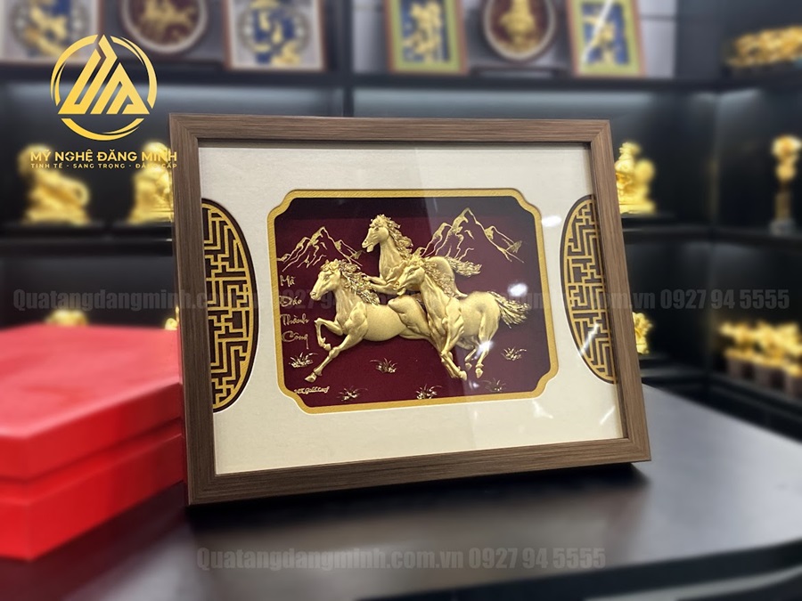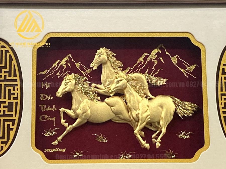 - Tranh Tam Mã dát vàng 24K giúp gia chủ thu hút năng lượng tích cực, tài lộc và may mắn trong sự nghiệp cũng như cuộc sống.