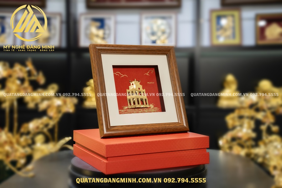 Tại Quà Tặng Vàng, chúng tôi cung cấp tranh Tháp Rùa dát vàng 24k với cam kết chất lượng và giá trị cao. Sản phẩm được bảo hành 2 năm, hỗ trợ đổi 1-1 và giao hàng tận nơi trên toàn quốc. Đến với showroom của chúng tôi tại Làng nghề đúc đồng Đại Bái, Gia Bình, Bắc Ninh để trải nghiệm và lựa chọn những sản phẩm vàng dát tinh xảo nhất.
