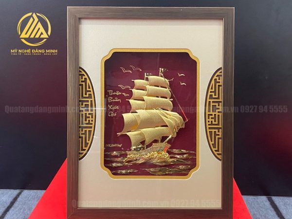 Tranh Thuận Buồm Xuôi Gió 27x34cm không chỉ là vật phẩm phong thủy mang lại may mắn mà còn là món quà cao cấp, ý nghĩa dành tặng đối tác, khách hàng và người thân. Với thiết kế tinh xảo và chất liệu vàng 24K cao cấp, tranh chính là lựa chọn hoàn hảo để trang trí và chiêu tài lộc cho gia chủ.