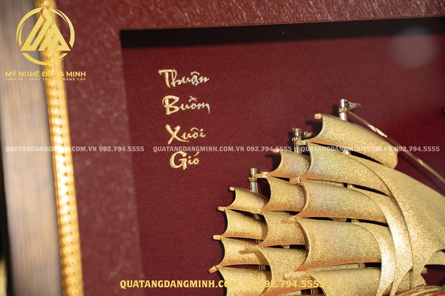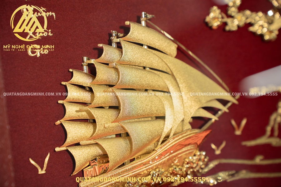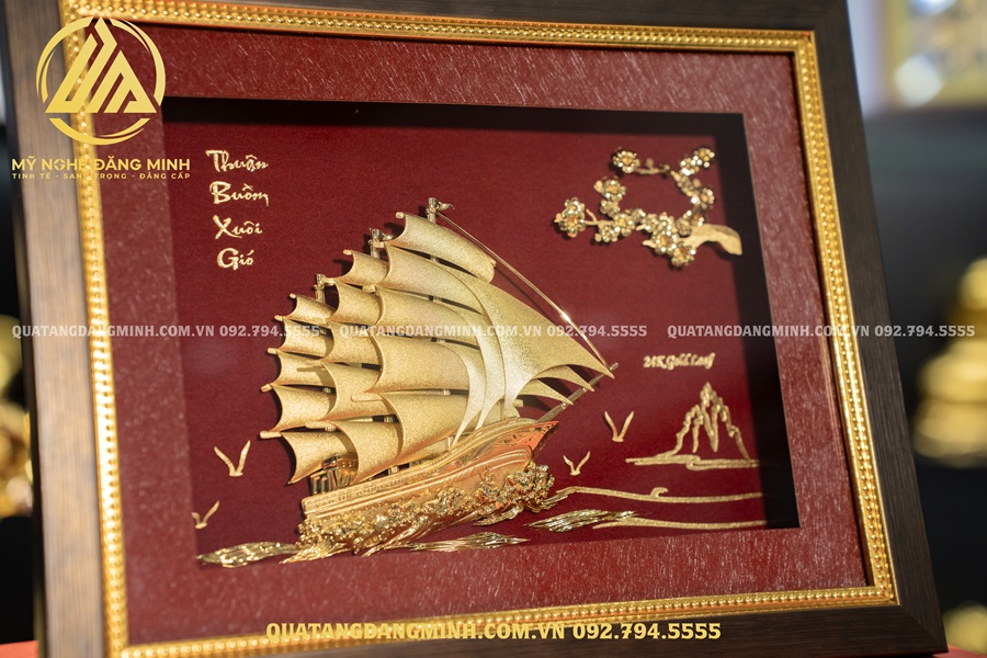Trong phong thủy, tranh thuyền buồm được coi là biểu tượng của thành công và sự thịnh vượng. Thuyền buồm tượng trưng cho hành trình suôn sẻ, thuận lợi và mang ý nghĩa “thuận buồm xuôi gió”. Khi kết hợp với vàng 24K, tranh thuyền buồm không chỉ là tác phẩm nghệ thuật mà còn là vật phẩm phong thủy cao cấp, giúp gia chủ thu hút tài lộc và may mắn. Vì vậy, tranh thuyền buồm dát vàng 24K không chỉ phù hợp làm quà tặng mà còn là điểm nhấn sang trọng trong không gian sống hay làm việc.