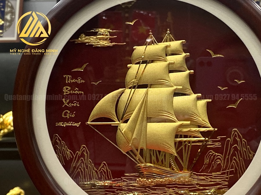 Hãy đến Quà Tặng Đăng Minh để sở hữu ngay bức tranh thuyền buồm dát vàng 24k khung gỗ tròn, mang đến không gian sống sang trọng và thu hút tài lộc cho gia đình và người thân yêu.