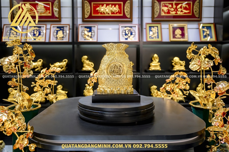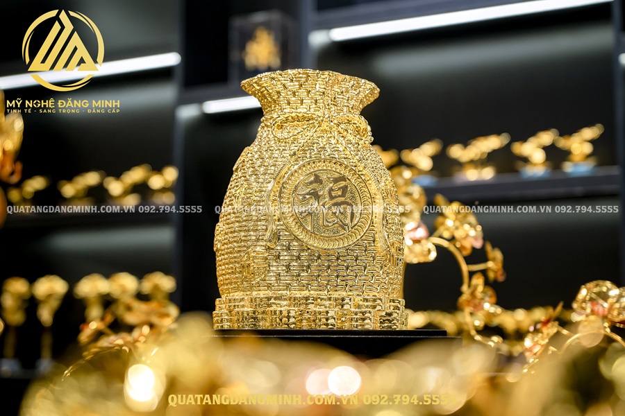Túi tiền chữ “Phúc” dát vàng được chế tác từ chất liệu cao cấp, với lớp vàng 24K phủ bên ngoài, tạo nên vẻ đẹp lộng lẫy và sang trọng. Mỗi chi tiết của sản phẩm đều được gia công tỉ mỉ, từ chữ “Phúc” đến các hoa văn trên túi tiền, đều mang lại sự tinh tế và đẳng cấp. Với kích thước nhỏ gọn, túi tiền chữ “Phúc” dễ dàng trưng bày ở nhiều vị trí trong ngôi nhà, văn phòng hay làm quà tặng ý nghĩa cho bạn bè, người thân.