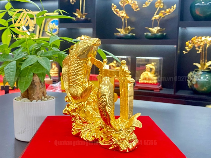 Trong văn hóa phương Đông, cá chép vượt Vũ Môn hóa rồng là biểu tượng của sự nỗ lực, kiên trì và thành công. Khi được chế tác bằng công nghệ dát vàng 24K tinh xảo, tượng không chỉ mang giá trị nghệ thuật cao. Mà còn trở thành vật phẩm phong thủy thu hút vượng khí, tài lộc và công danh.