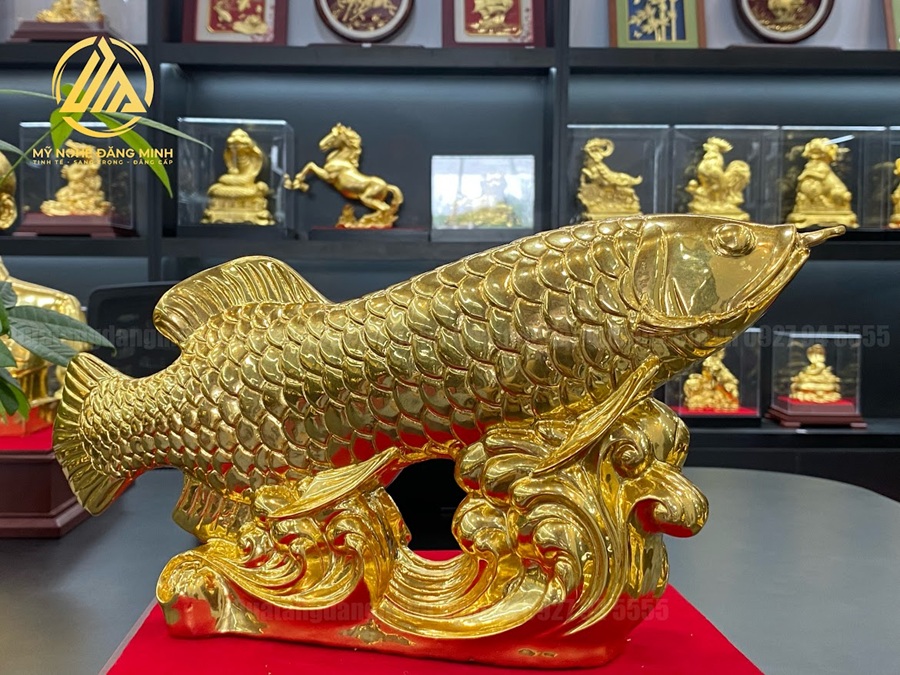 Tượng cá rồng mạ vàng: Thể hiện sự sang trọng, giàu có và thịnh vượng.