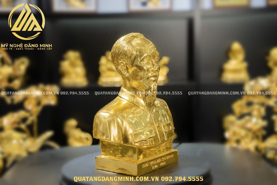 Lớp vàng 24k phủ bên ngoài không chỉ làm tăng thêm vẻ sang trọng, quý phái cho bức tượng mà còn biểu thị sự trường tồn, vĩnh cửu. Tượng Bác Hồ dát vàng thường được trưng bày trong phòng khách, phòng làm việc hay các không gian trang trọng, thể hiện lòng tôn kính và biết ơn của thế hệ sau đối với công lao to lớn của Bác.