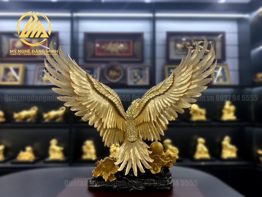 Trong phong thủy, đại bàng được coi là linh vật mạnh mẽ, mang đến nguồn năng lượng tích cực. Đặt biểu tượng đại bàng dát vàng tại phòng làm việc, phòng khách hay sảnh công ty giúp:
