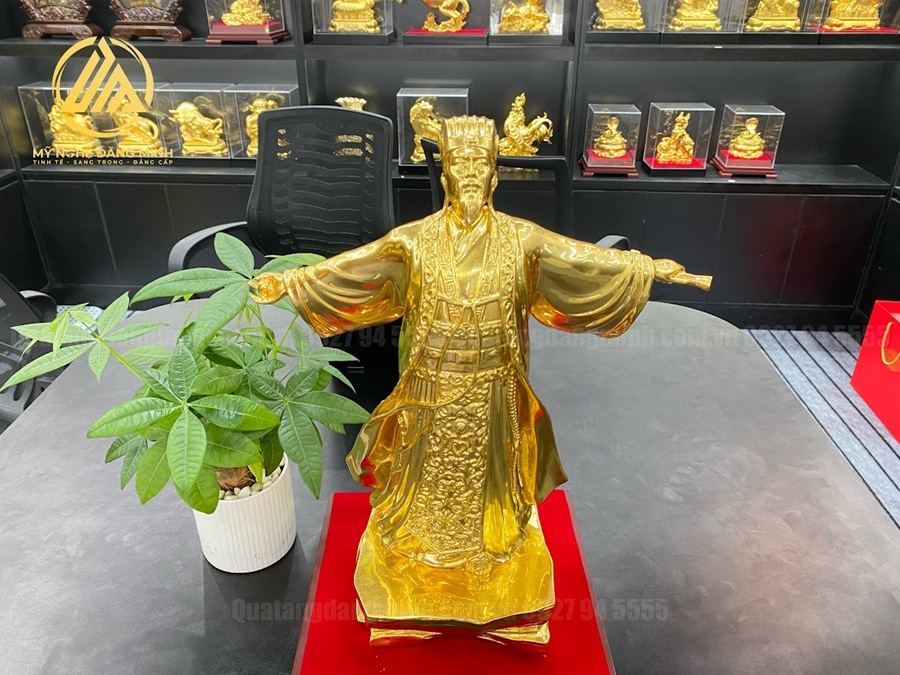 Tượng Khổng Minh bằng đồng dát vàng: Sang trọng, mang tính quyền uy và bền đẹp theo thời gian.