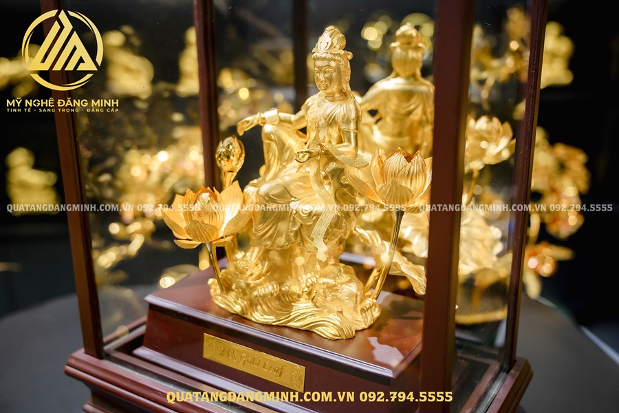 Tượng Phật Bà Quan Âm dát vàng là món quà tặng sang trọng và ý nghĩa. Đây không chỉ là món quà thể hiện sự quan tâm sâu sắc đến người nhận, mà còn mang ý nghĩa cầu mong bình an, may mắn và phúc lành. Sản phẩm thích hợp để tặng trong các dịp quan trọng như tân gia, khai trương, hay lễ Phật Đản.