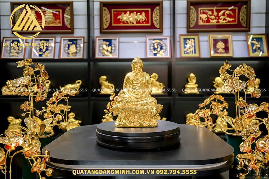 - Chất Liệu Cao Cấp: Tượng Phật được chế tác từ các chất liệu đồng vàng và được dát vàng tinh xảo, mang đến vẻ ngoài sang trọng và quý phái.