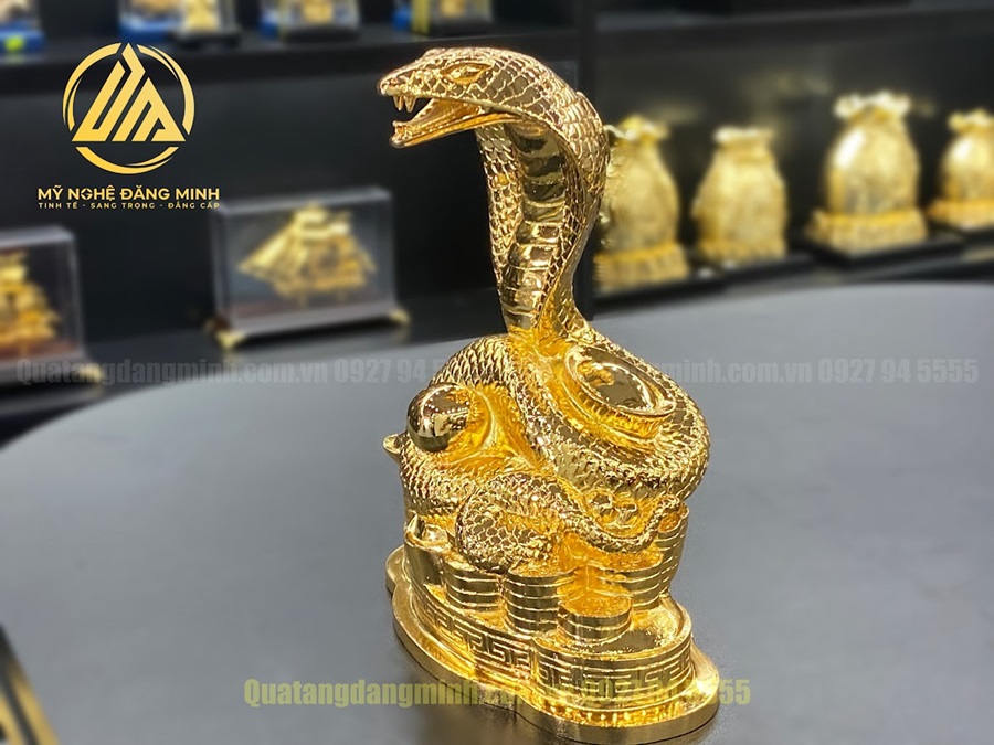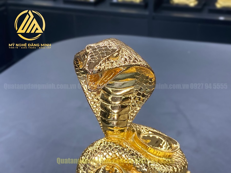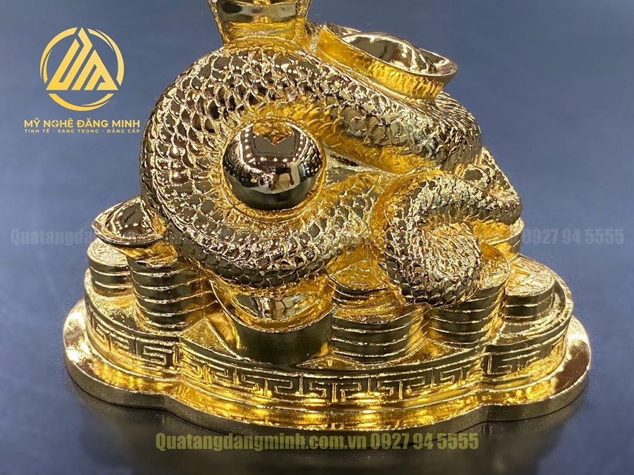 Tượng rắn được chế độ từ đồng nguyên chất, sau đó được mạ vàng 24K. Quá trình mạ vàng không chỉ giúp sản phẩm bền đẹp theo thời gian mà còn tăng thêm giá trị cao cấp cho món quà.