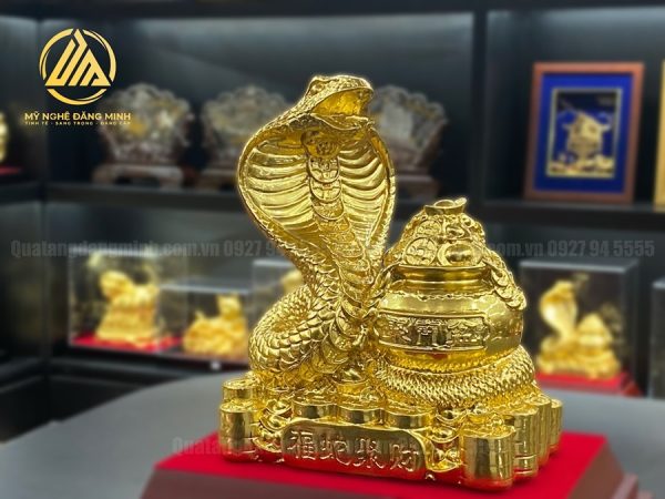 TƯỢNG RẮN ÔM HŨ TIỀN DÁT VÀNG 24K – BIỂU TƯỢNG PHONG THỦY CHO TÀI LỘC