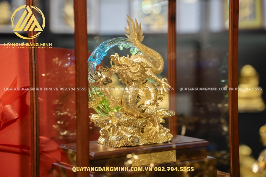 Cách trưng bày tượng Rồng ôm ngọc dát vàng 24k