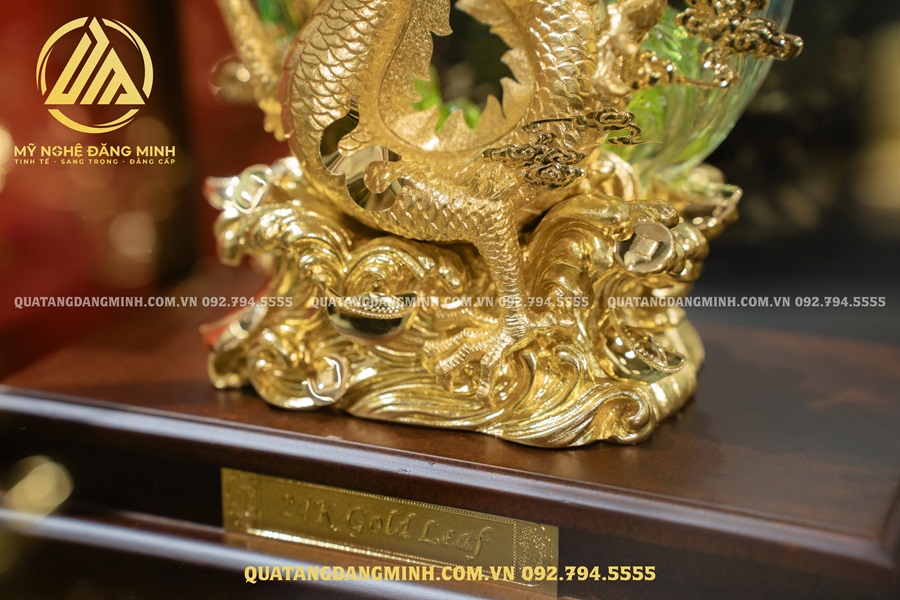 - Tên sản phẩm : Tượng rồng ôm ngọc dát vàng 24k