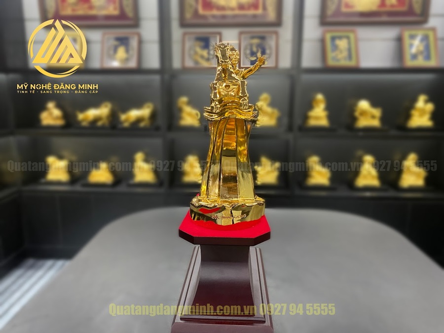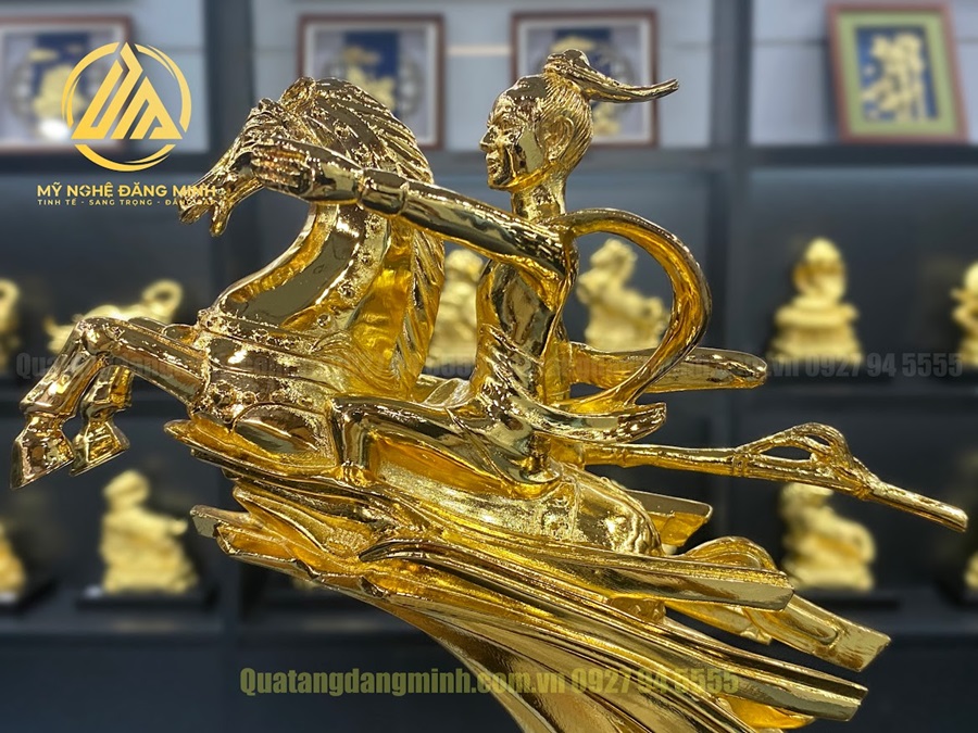 Biểu tượng Thánh Gióng mạ vàng 24K không chỉ là sản phẩm nghệ thuật cao cấp mà còn mang đậm giá trị văn hóa, lịch sử. Sản phẩm tái hiện hình ảnh vị anh hùng huyền thoại Thánh Gióng, biểu tượng cho sức mạnh phi thường và lòng yêu nước bất diệt của dân tộc Việt Nam.
