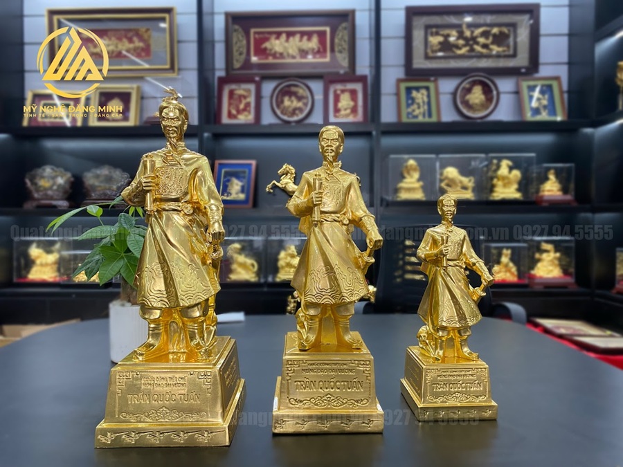 Tượng Trần Quốc Tuấn dát vàng 24K là sự kết hợp hoàn hảo giữa giá trị lịch sử, nghệ thuật điêu khắc truyền thống và vẻ đẹp sang trọng vượt thời gian. Không chỉ là một pho tượng đơn thuần, đây còn là biểu tượng thiêng liêng về tinh thần yêu nước, ý chí kiên cường của vị anh hùng dân tộc Hưng Đạo Đại Vương – người có công lớn trong ba lần đánh bại quân Nguyên Mông.