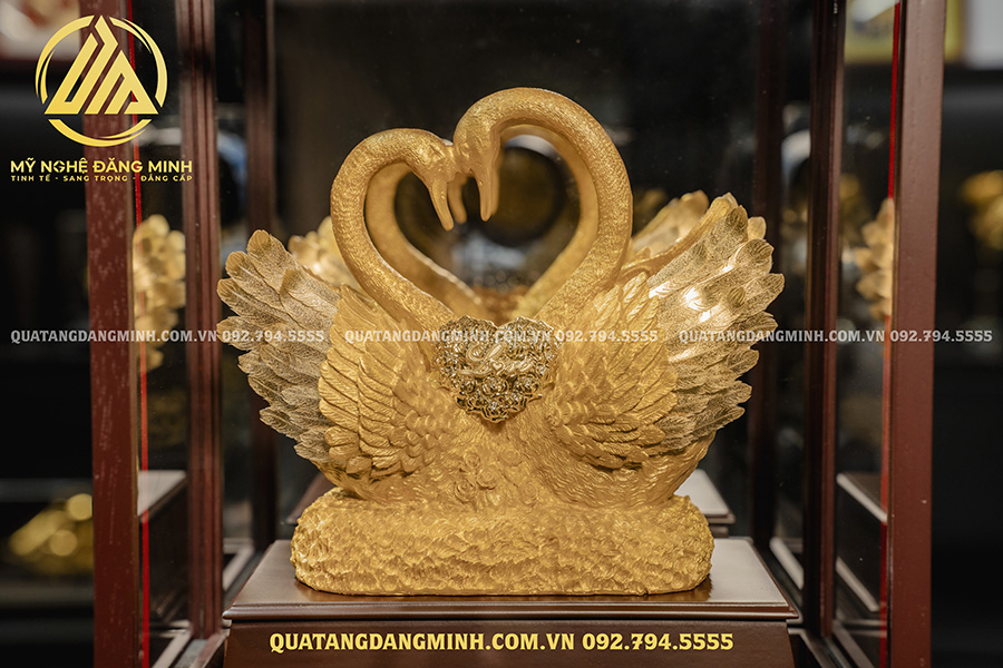 - Và tượng vợ chồng thiên nga dát vàng 24k thể hiện đủ các yếu tố vật chất và tinh thần. Bày trí tượng đôi chim thiên nga sẽ mang lại sự sung túc, đầm ấm lứa đôi cho gia chủ.